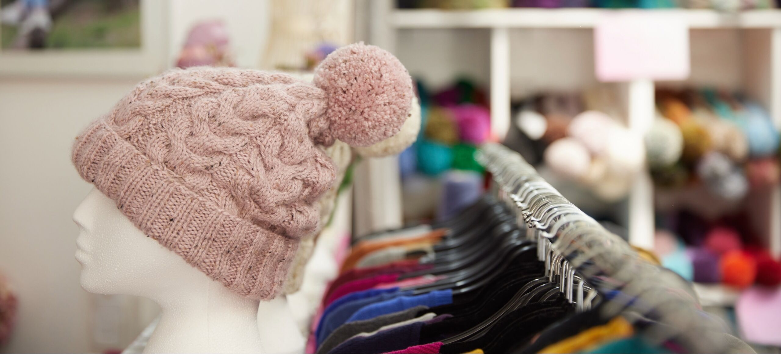 Joanne uses cotton, linen, merino, mohair, cashmere, and pure wool on her knitting machine when making her fabric, before she cuts, sews, and irons it into a piece of knitwear. Her knitwear is created in an array of colours – most yarns come in nearly 20 to 30 colours, so you’ll never find dull colours in her shop!